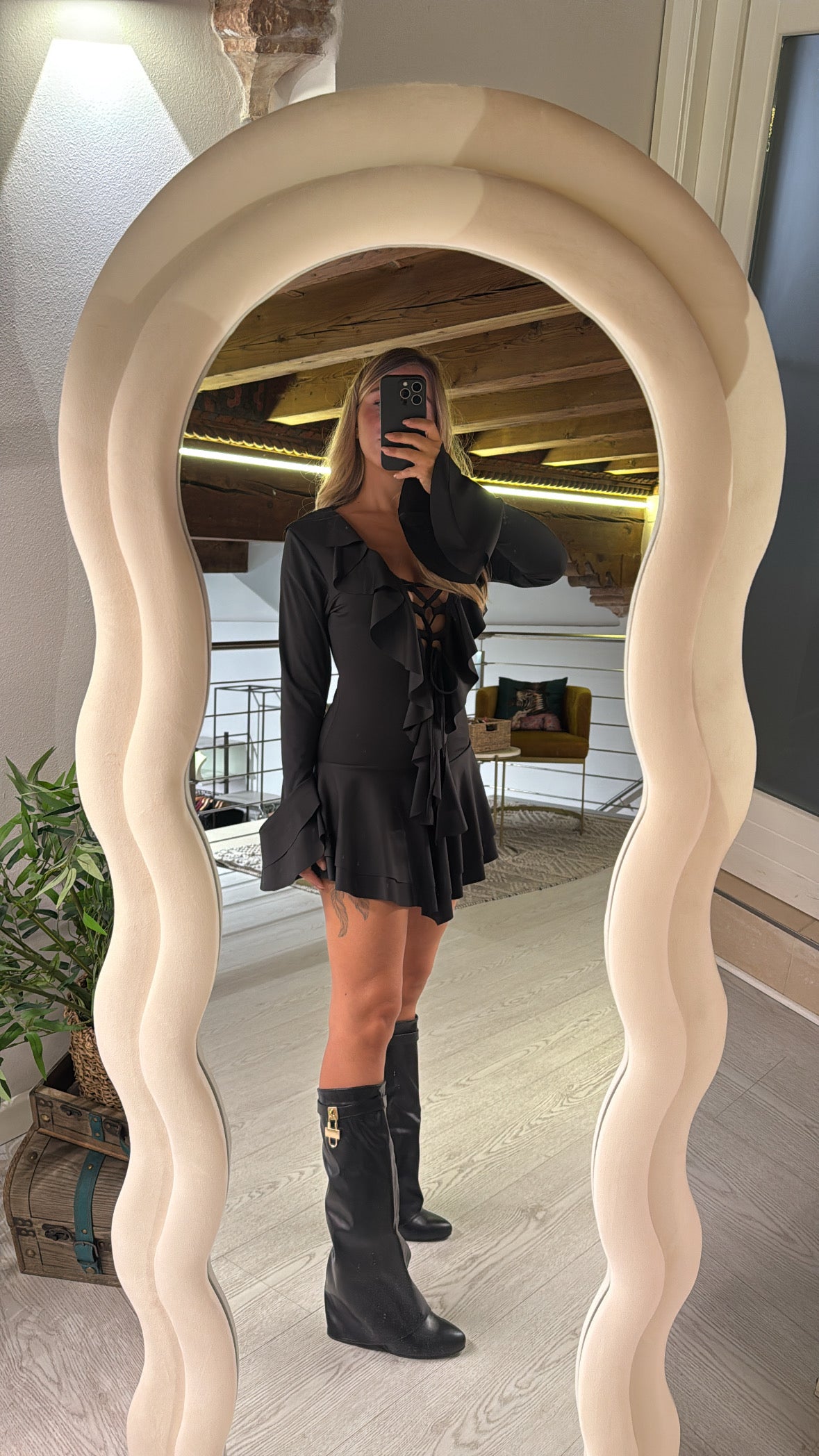 Abito con fodera a short ed incrocio sul davanti, manica morbida