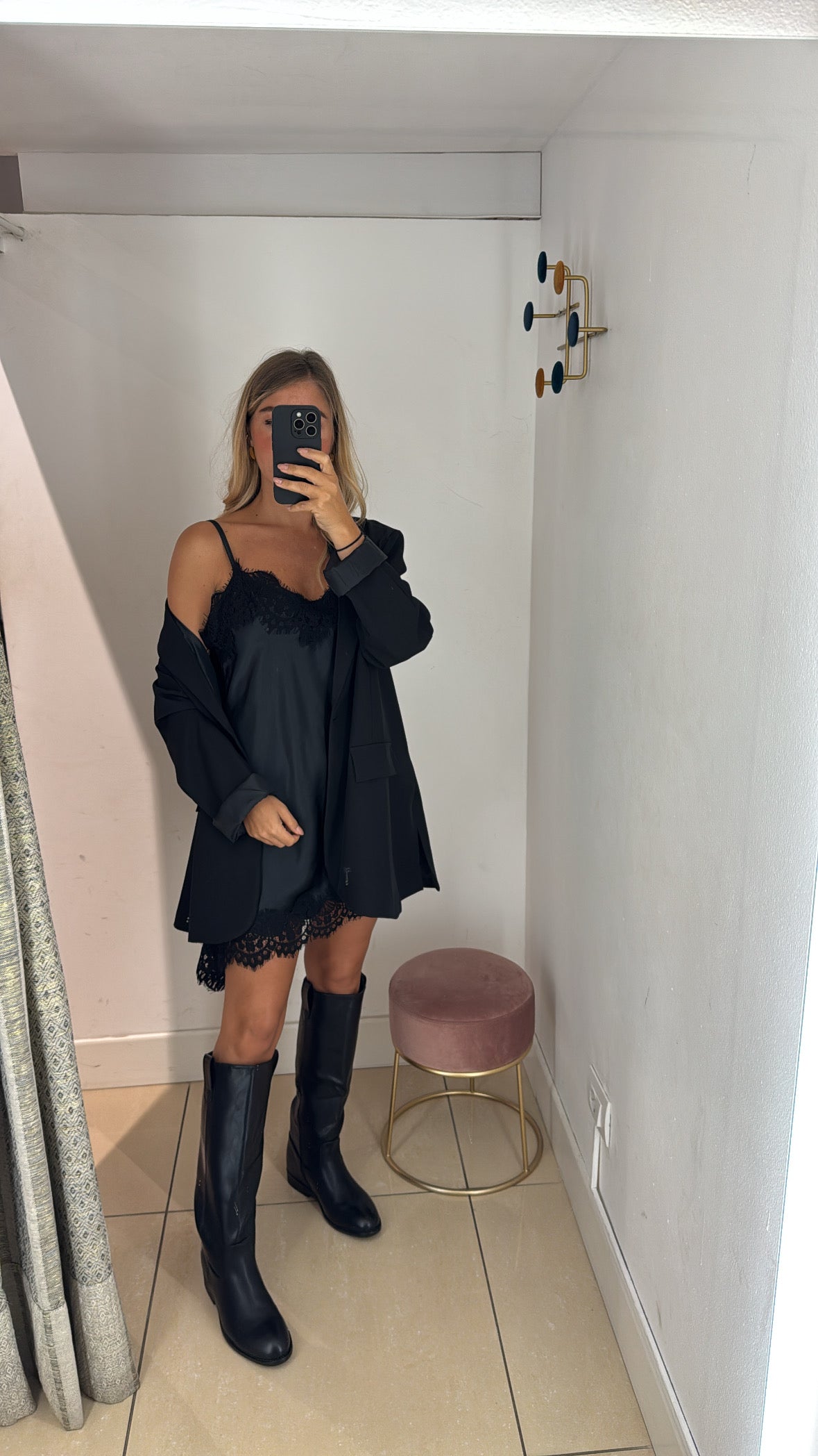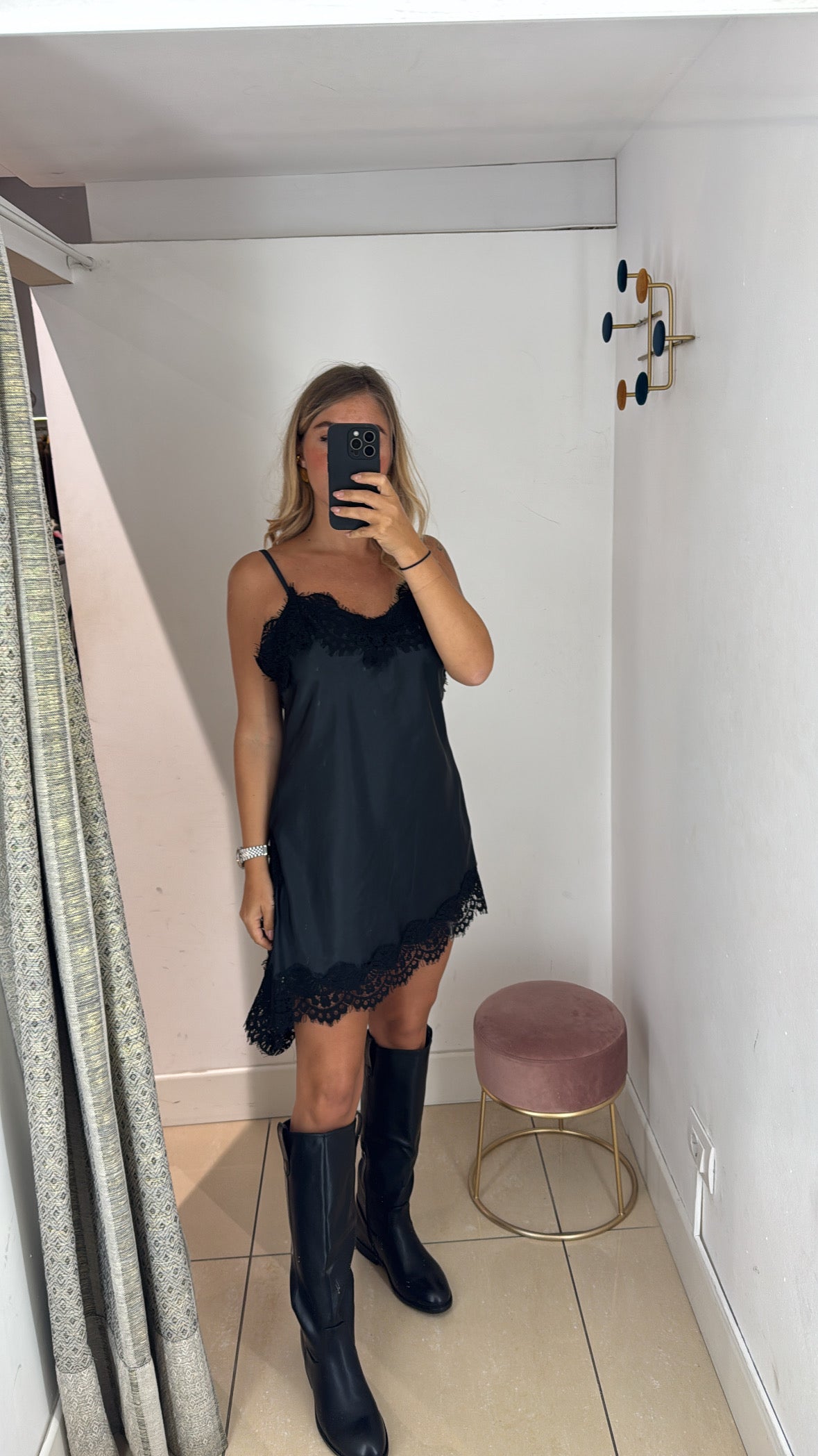 Abito sottoveste con pizzo a contrasto, spallina regolabile, spacco laterale