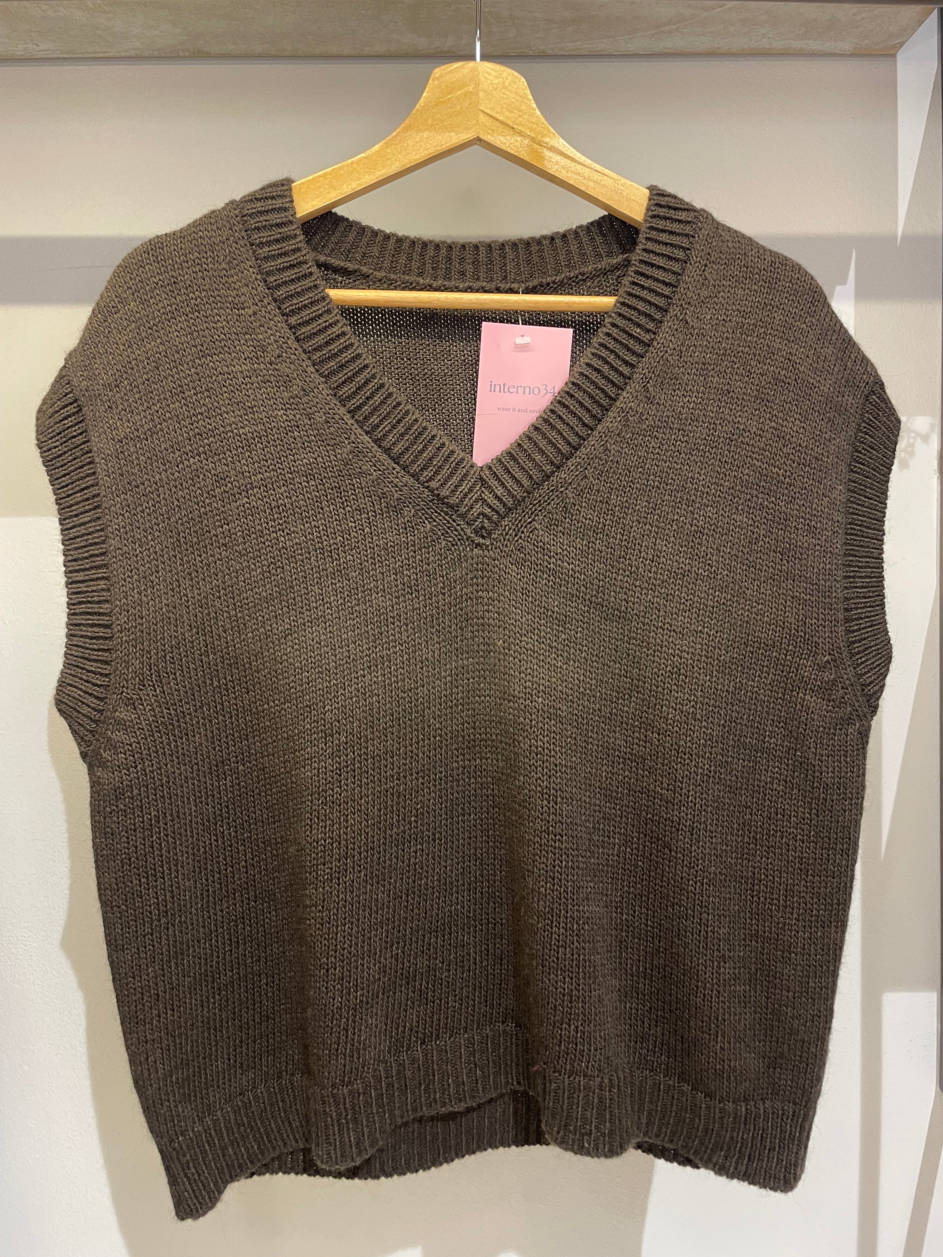 Gilet smanicato con scollo a V, vestibilità morbida. Composizione: 10% lana, 10% viscosa, 5% alpaca, 75% acrilico