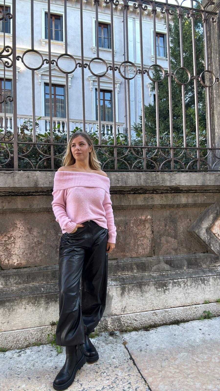maglione spalle scese, vestibilità morbida. Composizione: 8% lana, 8% viscosa, 10% poliestere, 14% poliammide, 60% poliacrilico