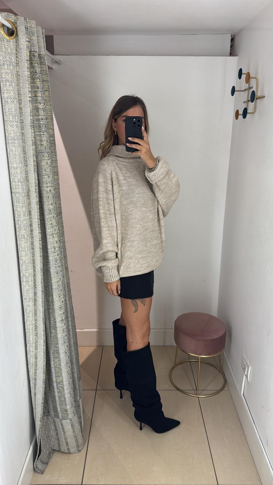 Maglione a collo alto, vestibilità morbida, con una spalla scoperta. 10% lana, 30% mohair, 60% acrilico.
