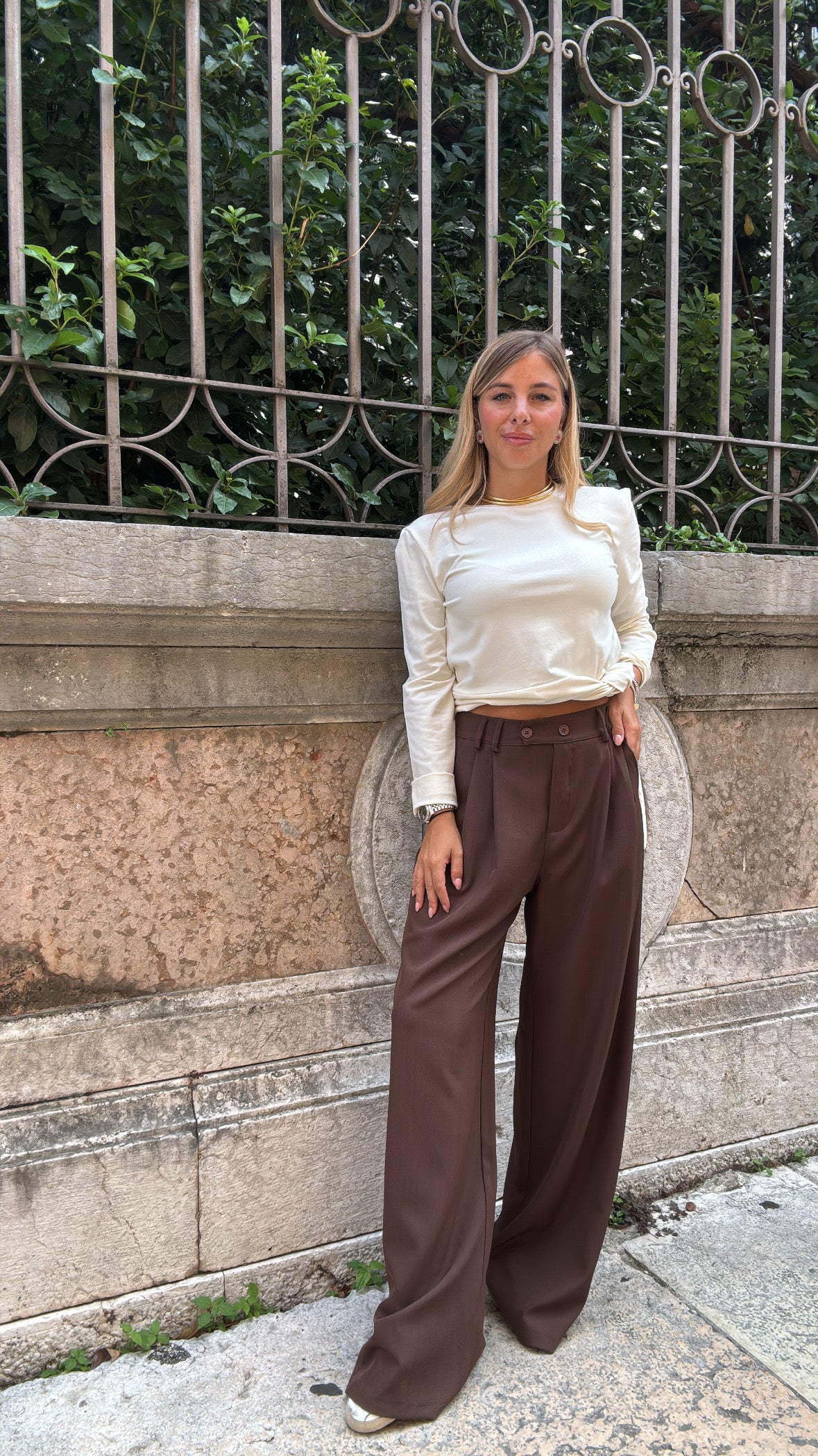 Pantalone sartoriale con chiusura con doppio bottone, tasche laterali,