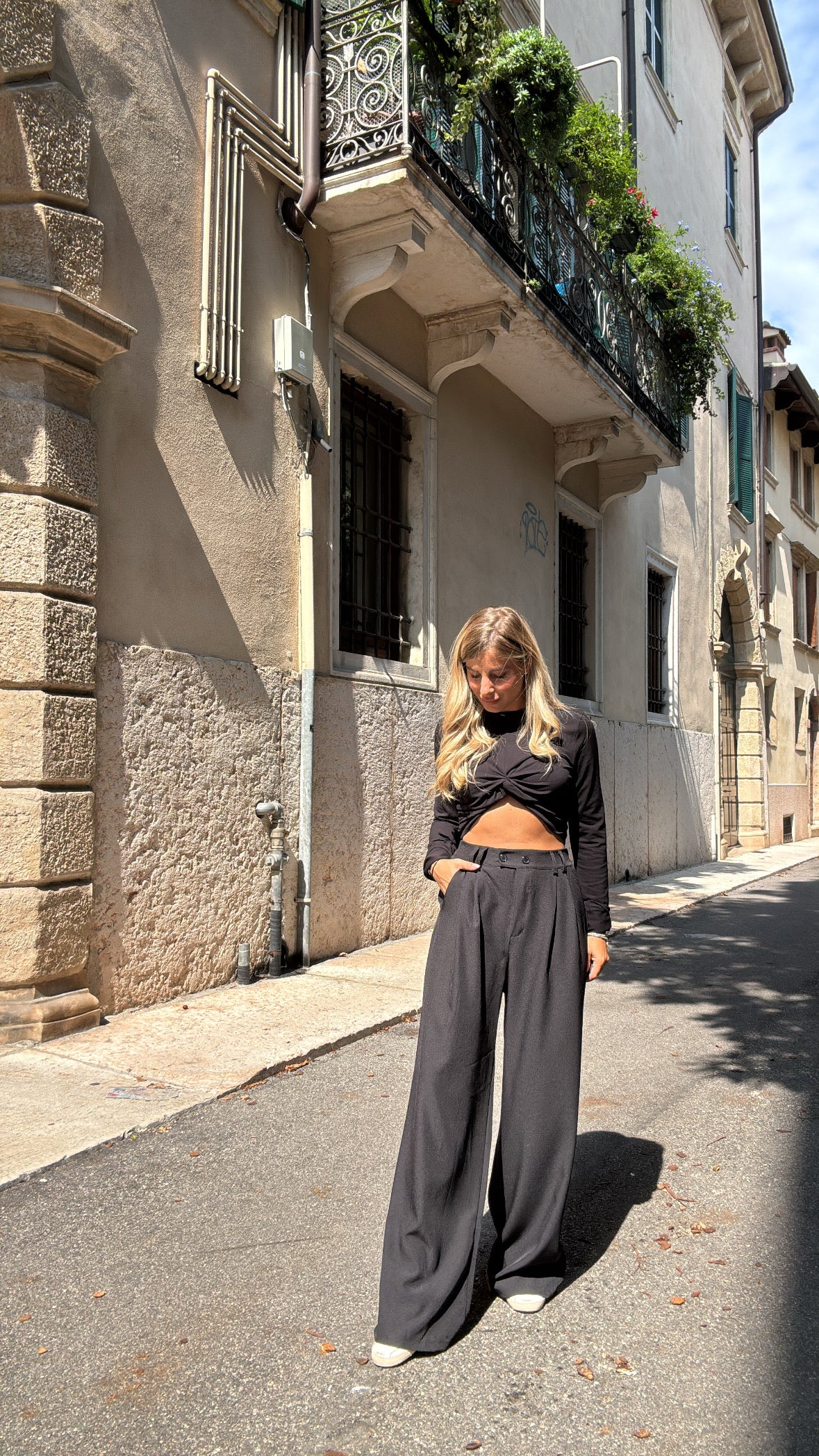 Pantalone sartoriale con chiusura con doppio bottone, tasche laterali,